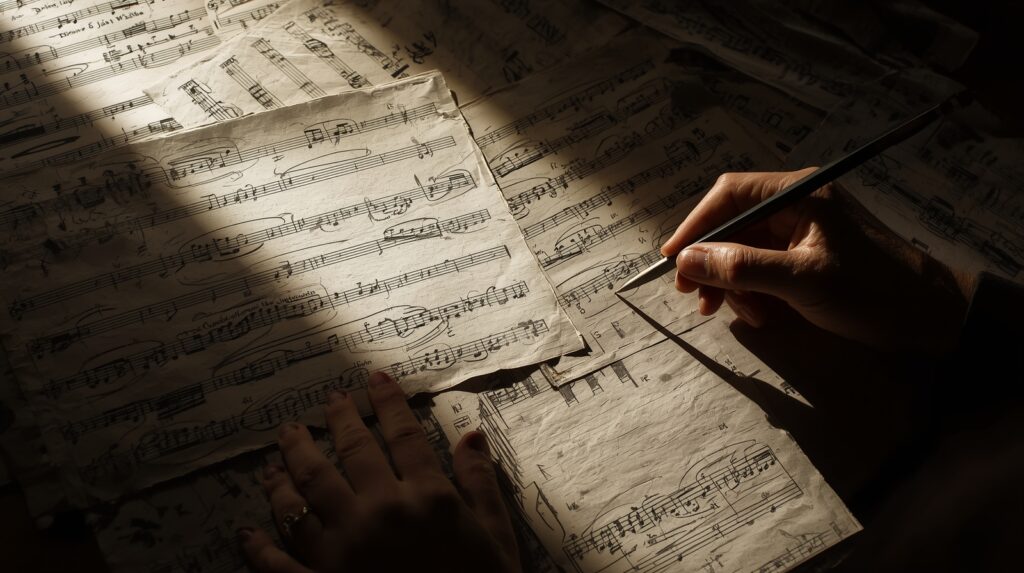クライマックスでは音が途切れる瞬間が多く使われ、モーツァルトの体力が尽きていく様子が静かな間で表現され、サリエリがその沈黙をどう受け止めるかが画面に映ります。沈黙の中で人物の選択が浮かび上がり、音楽が生まれる前後の静けさが作品の印象を深め、ラストの語りへ自然につながっていきます。