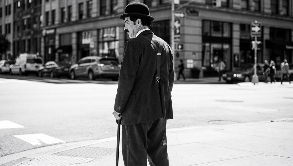 チャップリンのデビューは、ミュージックホールで鍛えた舞台芸が基盤にあります。観客の反応に敏感だった彼は、身振りを少し変えるだけで笑いの温度が大きく変わることを知り、身体表現を徹底して磨きました。映画デビュー後は、カメラの前では舞台よりも繊細な動きが求められると理解し、眉の角度や歩幅、視線の向け方まで計算しながらキャラクターを構築していきます。こうして生まれたのが、世界的に愛される「放浪者」です。その初期像には、すでに彼の“悲哀とユーモアの共存”という核心が芽生えていました。