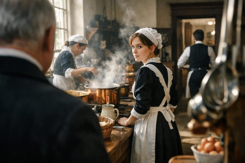 ダウントン・アビーの日常は、繰り返される動作で成り立っています。階下では使用人たちがまだ暗いうちから動き出し、湯気の立つ厨房、磨かれた銀器、制服の襟元、指示の声と短い返事が連なり、準備が整ったころに、階上の一日が始まります。食卓の位置、会話の順序、廊下を歩く速度、そのすべてが「いつも通り」として滑らかに流れていきます。