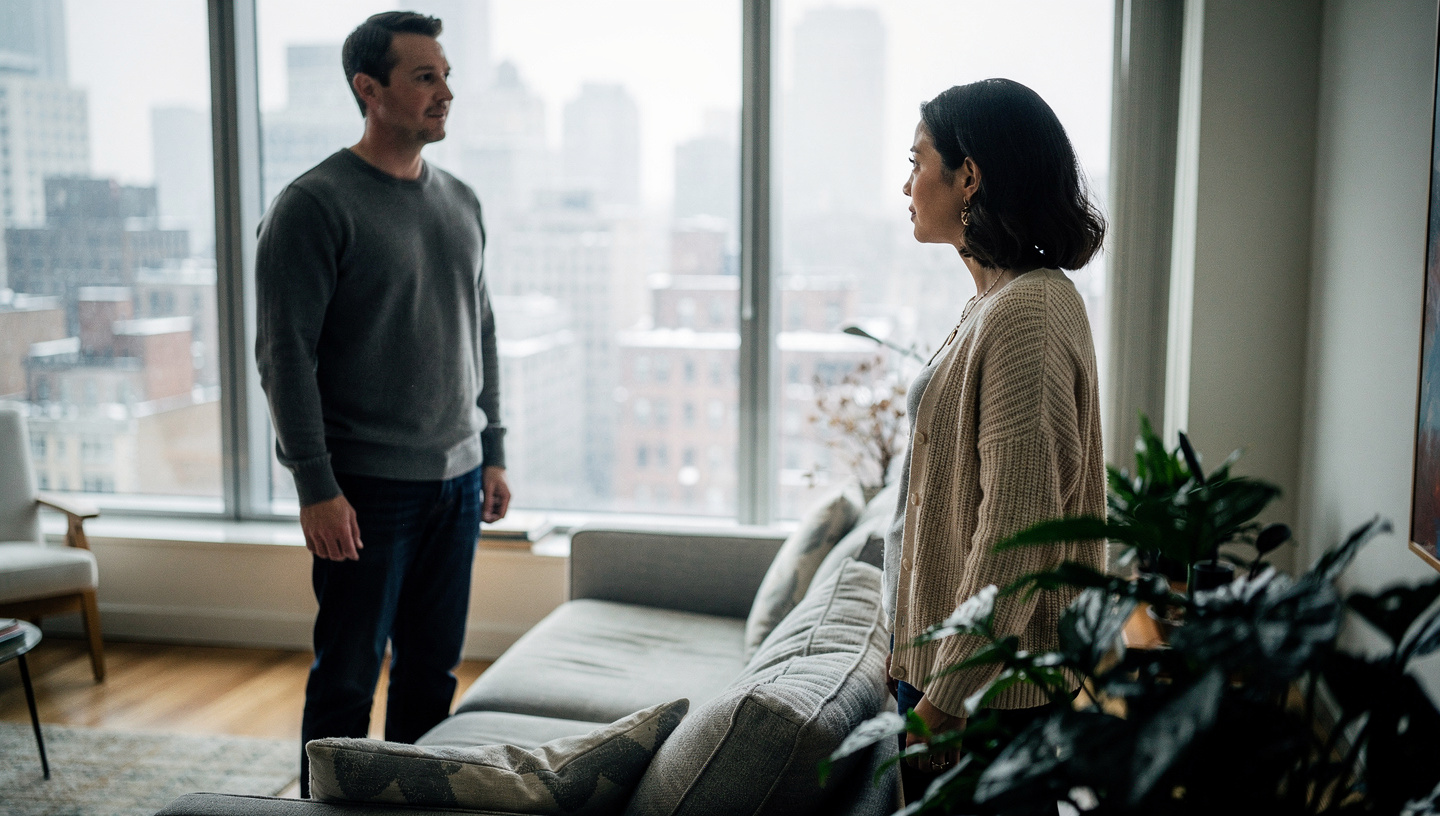朝の薄い光が部屋に差し込んで、ふたりの間に滞っていた沈黙がようやく動き出そうとし夜の出来事が真実として語られるかどうかは定まらないまま、夫婦がこれから選ぼうとする答えだけが静かに浮かび上がります。