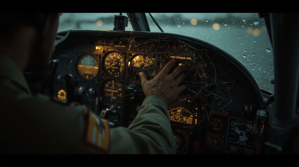 リシェ監督は派手なアクションよりも沈黙を信じる。嵐の轟音が途絶えた後、わずかな呼吸音だけが残るコックピットで、観客はトランス機長の思考を追うことになる。計器に光が反射し、汗が頬を伝い、ノイズの中で指先が震えるその時間が、彼の恐怖と責任を同時に映し出している。音のない数秒が、どんな台詞より雄弁に人間の奥行きを語る。監督はその静けさを「空間の真実」として扱い、アクション映画でありながら、沈黙を中心に置くことで現実の緊張を際立たせる。嵐の中よりも静寂の中でこそ、人は自分の声を聴くのだ。