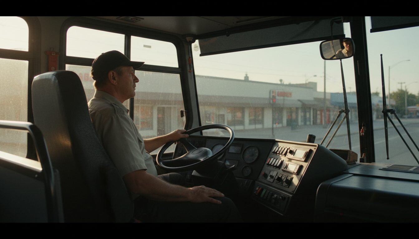 アメリカの地方都市で、曜日と時刻がほぼ同じ順序で巡る環境です。物語が動き出す前提として、登場人物はすでに決められた仕事と生活の枠の中にいます。時間は区切られ、移動経路や行動範囲も大きく変わりません。その中で、一人は公共交通に従事し、日々同じ道を往復する役割を担っています。もう一人は家庭内で新しい計画や制作を進め、生活空間の見え方を更新する立場に置かれています。二人は同じ家にいながら、判断の基準や関心の置き所が一致しているわけではありません。途中で起きる出来事は、事故や事件ではなく、予定外の変更や偶然の出会いといった種類のものです。判断の分かれ目は、続けてきた手順をそのまま保つか、別の対応を取るかという形で何度か現れます。その際、手帳に書かれた言葉、家の中の装飾、散歩の時間帯といった具体物が、決定の手がかりとして画面に置かれます。誰が、どの場所で、何を見て選んでいるのかは明示され続けますが、選択の正否は示されません。日常の流れを追う中で、判断が行われる位置と条件に目を向けていくと、場面の連なりが途切れずに見えてきます。