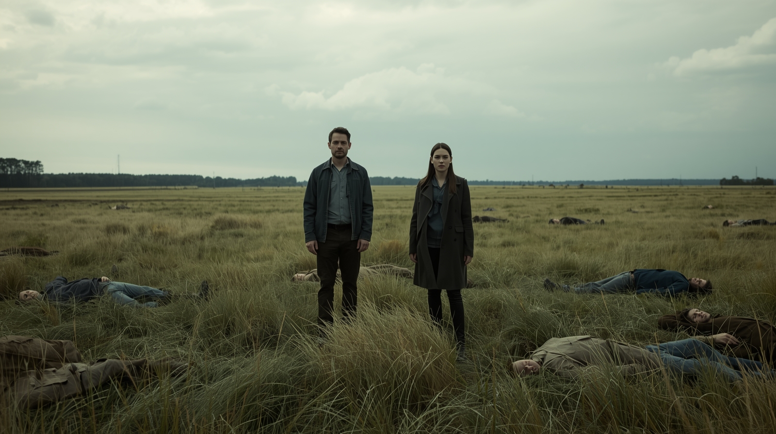 霧の中で目を覚ました男は、自分が誰かもわからぬまま、周囲に横たわる死体と静まり返った世界を見つめていた。車の事故現場、割れたガラス、曇った空、そしてどこまでも続く沈黙。彼の名はリアム、記憶を失いながらも歩き出すが、やがて恐ろしい事実に気づく。自分の周囲の半径数メートル以内に入った生物が、即座に命を落としてしまうのだ。生き残った理由を探る中で、彼と同じく記憶を失った女性ジェーンが現れ、彼女の存在だけがその“死の半径”を止められると判明する。