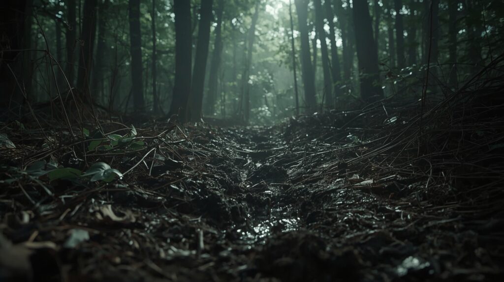クラークやベルミーが背負う過去は説明されすぎず、行動の中ににじみ出るように扱われていて、判断の迷いが自然に表れます。森の奥へ進む場面の光と影の切り替わりが記憶の層を示し、監督は過去を振り返る場面を必要最小限に留め、現在の動作を通して精神的な変化を描きます。