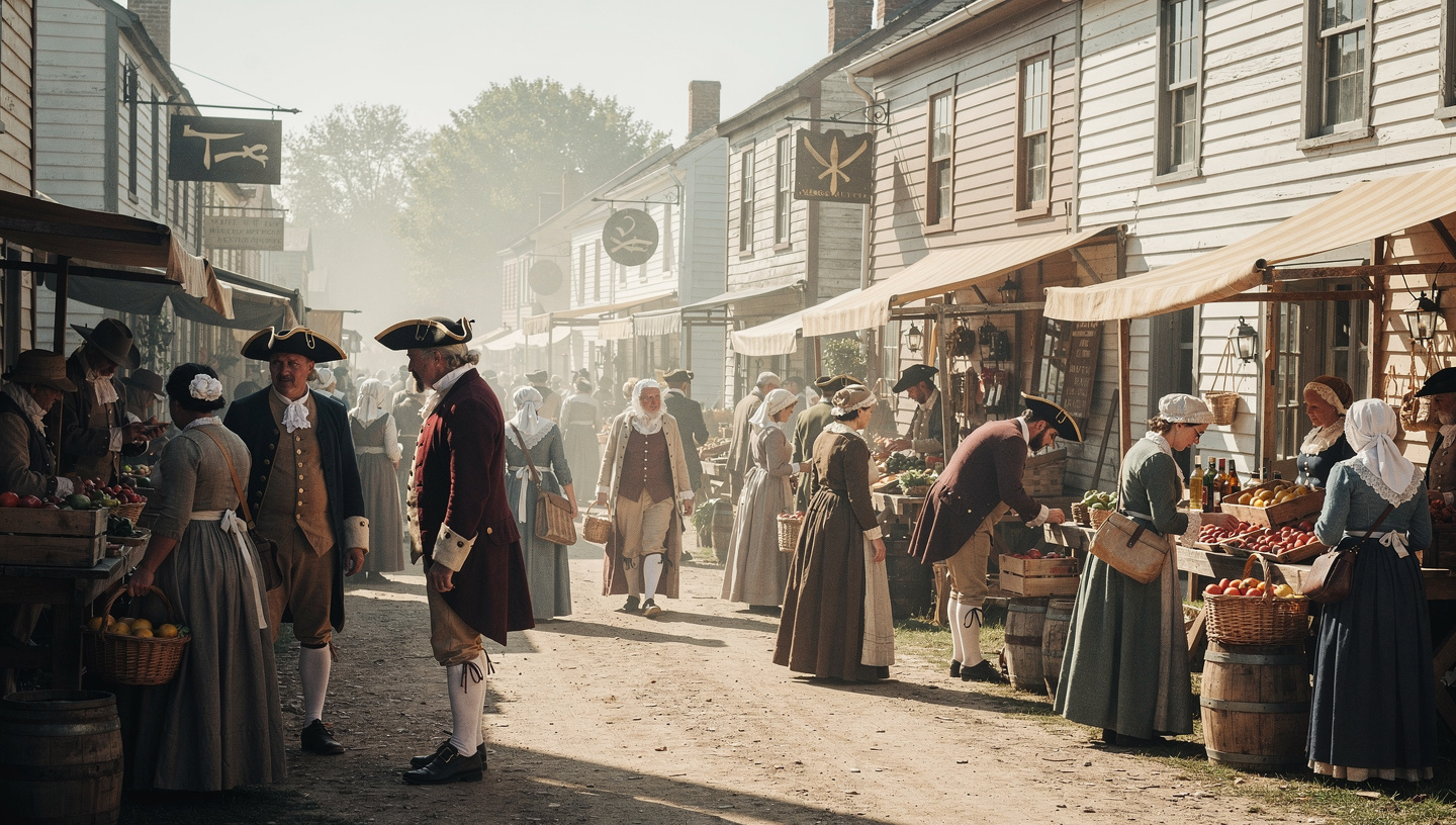 物語は、革命という言葉がまだ日常語ではなかった時代から始まります。市場での取引、家庭での食事、教会に集まる人々の足取りが、再現映像として淡々と映し出され、統治や課税への不満は、まだ小さな会話として存在しています。新聞の見出しが変わり、集会での声が少しずつ強まりながらも、多くの人々は態度を決めきれず、王への忠誠と自治への期待の間で揺れ続けます。独立は理想として語られながらも、生活を危険にさらす選択でもあり、その迷いが画面の空気として滞留します。ここで描かれるのは、革命前夜の緊張ではなく、決断を先送りし続ける時間の重さです。