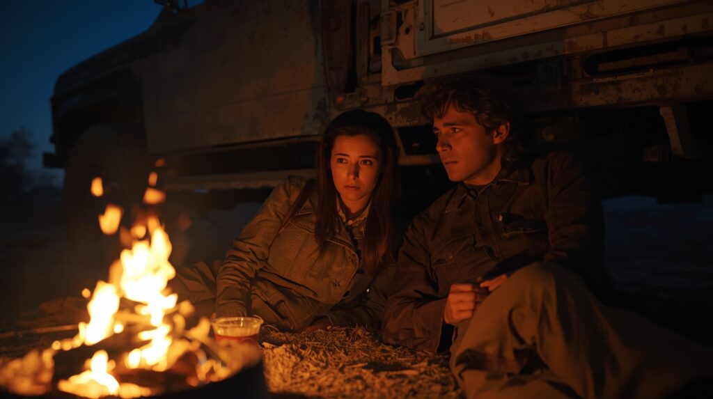 この映画は旅の物語でありながら、実際には「立ち止まる」ことがテーマになっています。登場人物たちは移動し続けますが、重要な瞬間はいつも静止の中にあります。廃墟の屋上で風を感じる場面、壊れた橋の上で夕陽を眺める場面、夜のキャンプで言葉を交わさない時間。監督は動よりも“止まる”ことで感情を語ります。