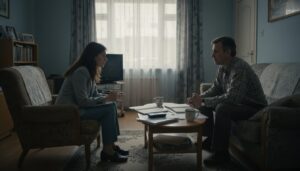 登場人物たちは、自分の考えを長く説明することを避けています。家族の間でも、判断の理由は細かく語られず、沈黙や短いやり取りのまま時間が過ぎていきます。何を選ぶかよりも、いつ決めるのかが問題になる場面が多く、決断の遅れそのものが状況を変化させます。説明されないまま残された認識が、次の行動に影響を与え、誤解やずれが修正されないまま維持されます。判断が言語化されないことが、現実的な重さとして画面に残ります。